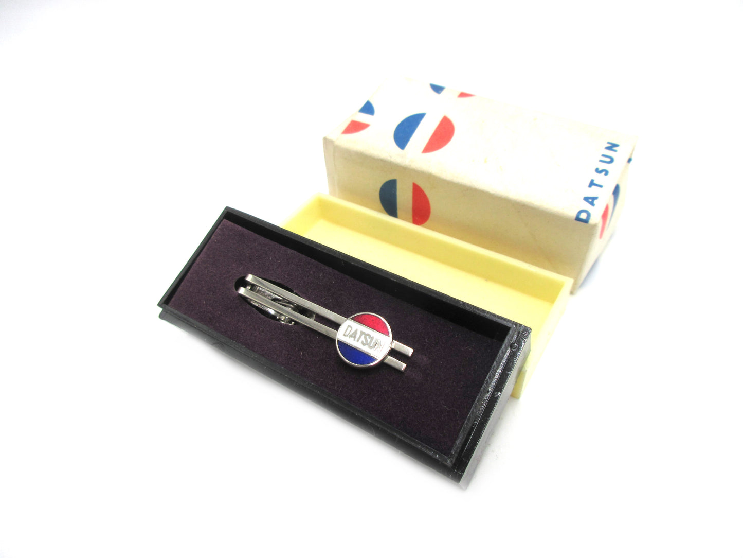 Vintage Datsun Employee Official Tie Clip Round NOS with Box with Nissan Wrap