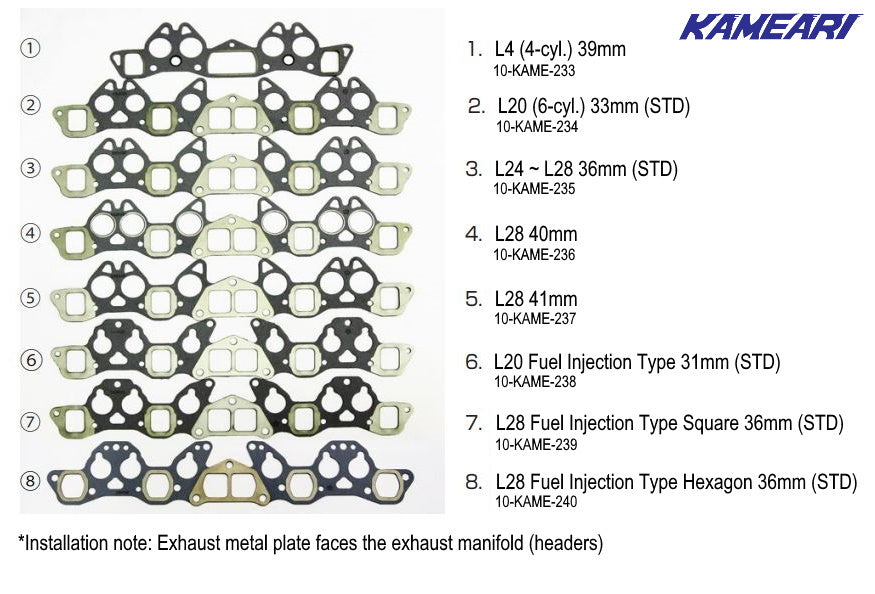 Kameari Performance Manifold Gasket for Nissan L Engines