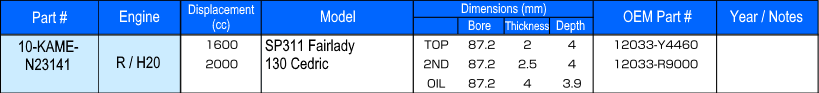 - Kameari Standard Piston Ring Set for Datsun Roadster SP311 / Nissan Cedric 130